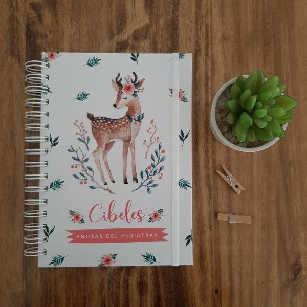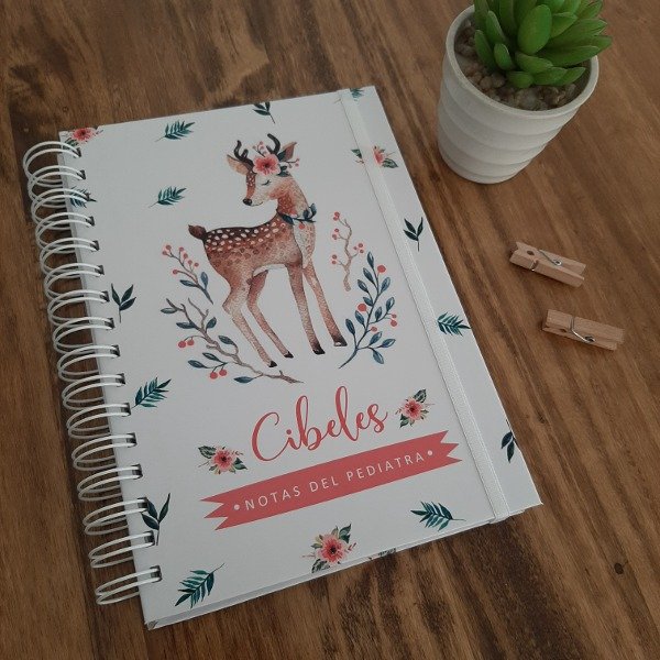 Tamaño A5 (15 x 21 cm) con tapas duras, forradas con papel adhesivo y laminado brillante. Tiene 140 páginas a color con textos y espacios para agregar fotos también. Tanto las tapas como el interior son personalizados y llevan el nombre del bebé asi que una vez realizada la compra no te olvides de dejarlo escrito en notas.