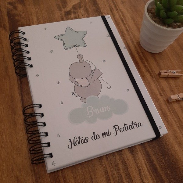 Tamaño A5 (15 x 21 cm) con tapas duras, forradas con papel adhesivo y laminado brillante. Tiene 140 páginas a color con textos y espacios para agregar fotos también. Tanto las tapas como el interior son personalizados y llevan el nombre del bebé asi que una vez realizada la compra no te olvides de dejarlo escrito en notas.