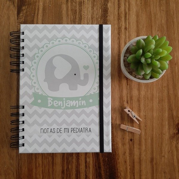 Tamaño A5 (15 x 21 cm) con tapas duras, forradas con papel adhesivo y laminado brillante. Tiene 140 páginas a color con textos y espacios para agregar fotos también. Tanto las tapas como el interior son personalizados y llevan el nombre del bebé asi que una vez realizada la compra no te olvides de dejarlo escrito en notas.