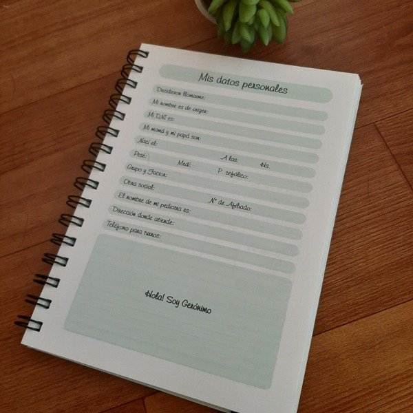 Tamaño A5 (15 x 21 cm) con tapas duras, forradas con papel adhesivo y laminado brillante. Tiene 140 páginas a color con textos y espacios para agregar fotos también. Tanto las tapas como el interior son personalizados y llevan el nombre del bebé asi que una vez realizada la compra no te olvides de dejarlo escrito en notas.