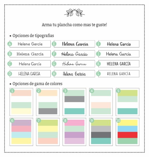 No te olvides de aclarar en notas cual se ajusta mejor a lo que necesitas. También podes elegir otro dibujito, la gama de color y la tipografía que más te guste! Cualquiera de las 3 opciones de planchas se entregan cortadas por tamaño!